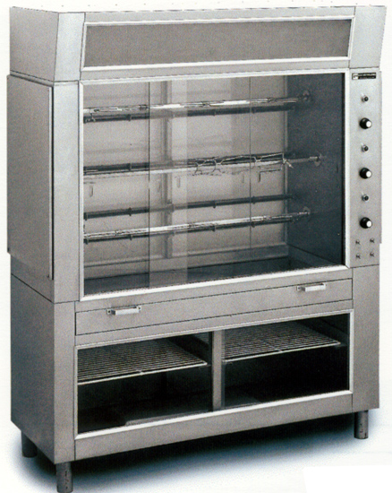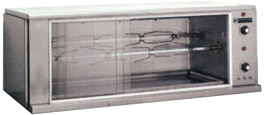 Ανοξείδωτες Κοτοπουλιέρες – Ψησταριές, Ηλεκτρικές, επιδαπέδιες (με 3, 5, 7 ή 9 σούβλες) και επιτραπέζιες (1 ή 2 σούβλες), με ανεξάρτητης λειτουργίας μοτέρ.