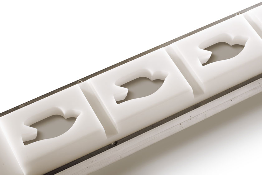 • Ειδικό Μοτέρ στην Κεφαλή ρυθμιζόμενης ταχύτητας περιστροφής των κυλίνδρων (99 ταχύτητες). Αυτό το χαρακτηριστικό μας δίνει τη δυνατότητα να επεξεργαστούμε πολύ ευαίσθητες ζύμες χωρίς να τις ταλαιπωρούμε. • Σύστημα για ρύθμιση μικρότερης ή μεγαλύτερης ποσότητας στην 1η σειρά της κάθε λαμαρίνας, για τέλεια ομοιομορφία του τελικού προϊόντος. • Σύστημα Περιστροφής των κορνέ, ρυθμιζόμενης ταχύτητας • Σύστημα Κοπής με Σύρμα με Σύρμα, με δικό του μοτέρ. • Ειδικό μοτέρ συνεχούς ρεύματος, μεγάλης ταχύτητας και αξιοπιστίας “HD”, για την προώθηση των λαμαρινών, ρυθμιζόμενης ταχύτητας. • Σύστημα επαναφοράς της λαμαρίνας, για λειτουργία με 1 άτομο, για εισαγωγή και έξοδο της λαμαρίνας από την ίδια πλευρά. • Σύστημα συνεχούς λειτουργίας και κίνησης της λαμαρίνας, για λειτουργία με 1 ή 2 άτομα, με εισαγωγή της λαμαρίνας από τα μία πλευρά της μηχανής και έξοδο από την άλλη. • Ειδικός αισθητήρας μετάλλου στο τραπέζι για αυτόματη έναρξη λειτουργίας μόλις «δει» τη λαμαρίνα, προσδιορισμό της θέσης της λαμαρίνας. • Σύστημα αυτόματης παύσης όταν περάσει η λαμαρίνα. • Όλα τα συστήματα προστασίας της μηχανής και του χειριστή, με ειδικά καλύμματα με τερματικούς διακόπτες, διπλά φωτοκύτταρα ασφαλείας στο εμπρός και πίσω μέρος επάνω από το τραπέζι, και μονά φωτοκύτταρα κάτω από το τραπέζι. • Σύστημα αυτόματης ρύθμισης του ύψους του τραπεζιού, με δικό του μοτέρ. Το επιθυμητό ύψος λειτουργίας ρυθμίζεται μέσα από το κάθε πρόγραμμα. Υπάρχει δυνατότητα επιλογής σε κάθε πρόγραμμα, να ανεβοκατεβαίνει ή όχι το τραπέζι στην αλλαγή κάθε σειράς. • Σύστημα Παραγωγής κοφτών προϊόντων με σύρμα και δικό του μοτέρ. • Σύστημα Παραγωγής πατητών προϊόντων. • Σύστημα Παραγωγής μεγάλων προϊόντων (κέικ μέχρι 1 κιλό, ρεβανί, καρυδόπιτες κ.τ.λ.). • Σύστημα Παραγωγής παραδοσιακών προϊόντων πλεξούδες, μουστοκούλουρα, σμυρναίικα κ.α • Σύστημα Παραγωγής δίχρωμων προϊόντων, με δύο περάσματα. • Σύστημα Γεμίσματος ταρτών, παστών και άλλων συναφών ειδών. • Σύστημα Γεμίσματος δοχείων με κρέμες, μαρμελάδες κ.τ.λ. • Σύστημα Διακόσμησης τελειωμένων προϊόντων με κρέμες, μαρμελάδες κ.τ.λ. • Πληρεί όλες τις προδιαγραφές ασφαλείας και υγιεινής και διαθέτει το σήμα “CE”. • Ηλεκτρολογικό Πίνακα, με πλήρη θερμική προστασία των κινητήρων με θερμικά και ρελέ. Παραδίδεται με το παρακάτω εξοπλισμό: 1 Κεφαλή για μαλακές, ημίσκληρες και σκληρές ζύμες, με χαραγμένους ανοξείδωτους κυλίνδρους, με ειδικά adaptors για χρήση και για μαλακές ζύμες. 1 τροχήλατη βάση κλειστού τύπου. 1 Πλάκα Περιστροφική τοποθέτησης των κορνέ 6 Σειρές πλαστικά κορνέ της αρεσκείας σας. 1 Σειρά ειδικά καλούπια για κουλούρι πλεξούδα. 1 Σύστημα κοπής με σύρμα και δικό του μοτέρ. 2 καλούπια για κοφτά προϊόντα της αρεσκείας σας.